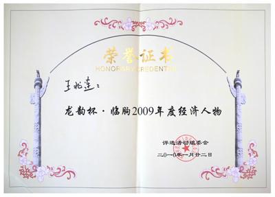 公司總經(jīng)理兼董事長王兆連榮獲龍韻臨朐2009年度經(jīng)濟人物