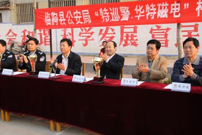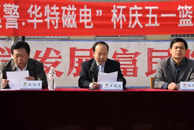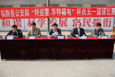 4月29日上午,由公司協(xié)辦的臨朐縣公安局“特巡警·華特磁電”杯慶五一籃球比賽在東城區(qū)吳家廟籃球場舉行??h公安局政委張伯濤、縣公安局副局長楊維護,我公司董事長兼總經(jīng)理王兆連出席開幕式。王兆連董事長在開幕式上講話,代表公司向大賽表示祝賀并祝籃球賽圓滿成功。