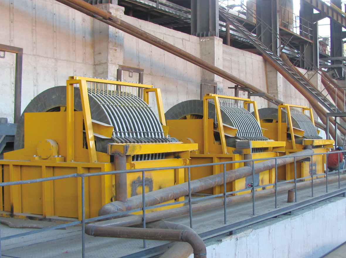 ◆磁性圓盤為環(huán)形半磁結(jié)構(gòu),集料盤(外殼)采用全密封,集料盤下部浸沒在礦漿槽中,通過連續(xù)旋轉(zhuǎn)的方法不斷吸附礦漿中的磁性顆粒。